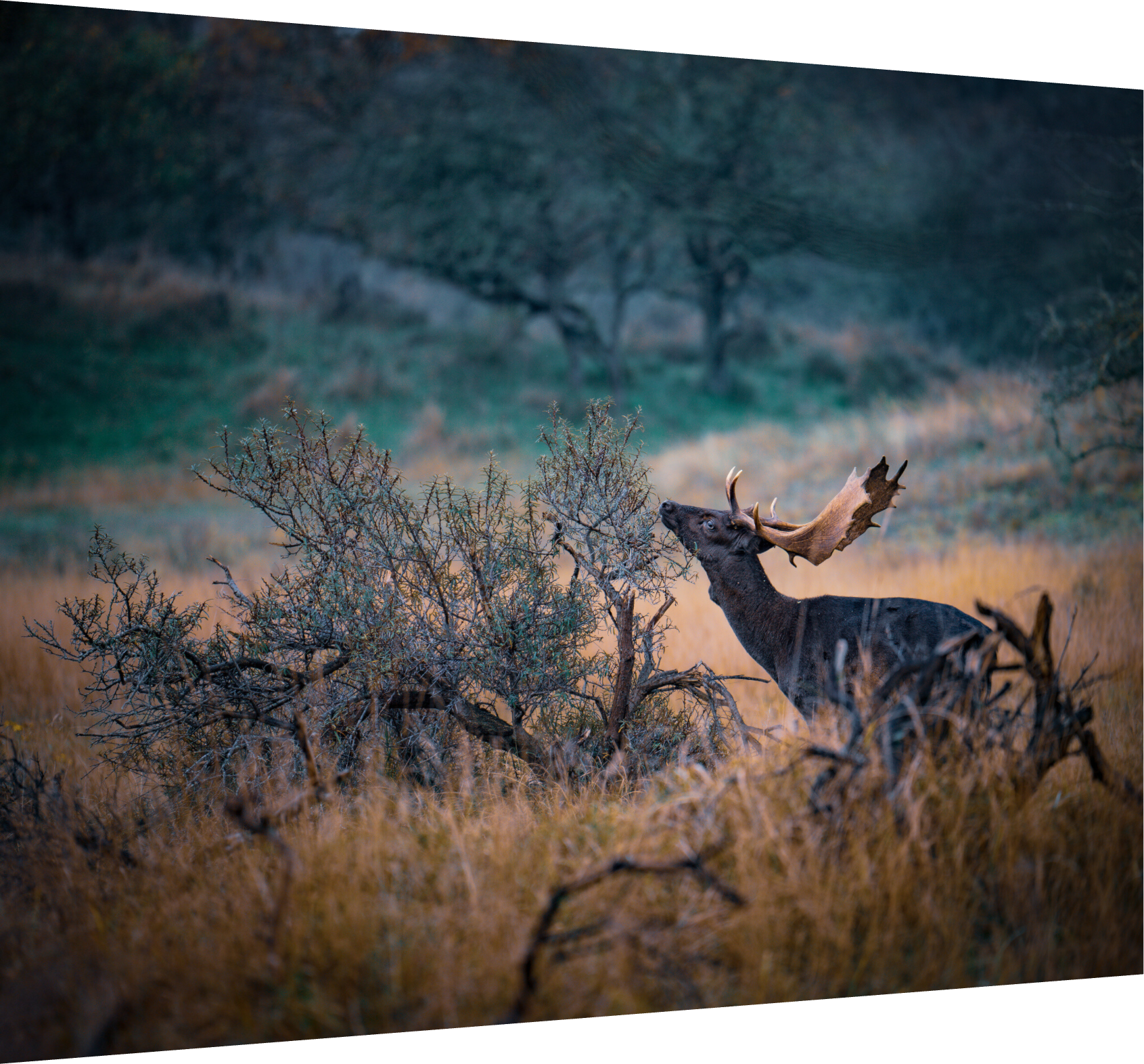 In the quiet wilderness, just before winter tightens its grip, I captured this red deer delicately picking the last berries from the bushes.